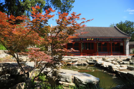 自1989年起,每年都舉辦以觀紅葉為主題的紅葉文化節(jié)。展覽的紅葉主要有五角楓、三角楓、雞爪楓、柿樹等,面積最大的紅葉樹種是黃櫨,有近10萬株。這些紅葉樹種葉子里含有大量的葉綠素、葉黃素、類胡蘿卜、胡蘿卜素、花青素,春夏兩季葉綠素進行光合作用,并使葉子呈現(xiàn)綠色;霜秋季節(jié),天氣變冷,晝夜溫差變化增大,葉綠素合成受阻,逐漸破壞消失,而類胡蘿卜、胡蘿卜素、花青素成份增多,使葉子呈現(xiàn)紅黃、橙紅等色彩。