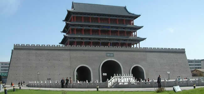 南城門又名昭武門,始建于隋朝,明代重修,原城樓為重檐歇山頂式建筑,造型古樸雄偉。據(jù)說(shuō),每當(dāng)天氣晴朗無(wú)風(fēng)的時(shí)候,夜晚登上城樓,可以清晰地聽(tīng)到如細(xì)雨在瓦上淋漓的聲音,故有“夜雨打瓦”之稱,是涼州八景之一。