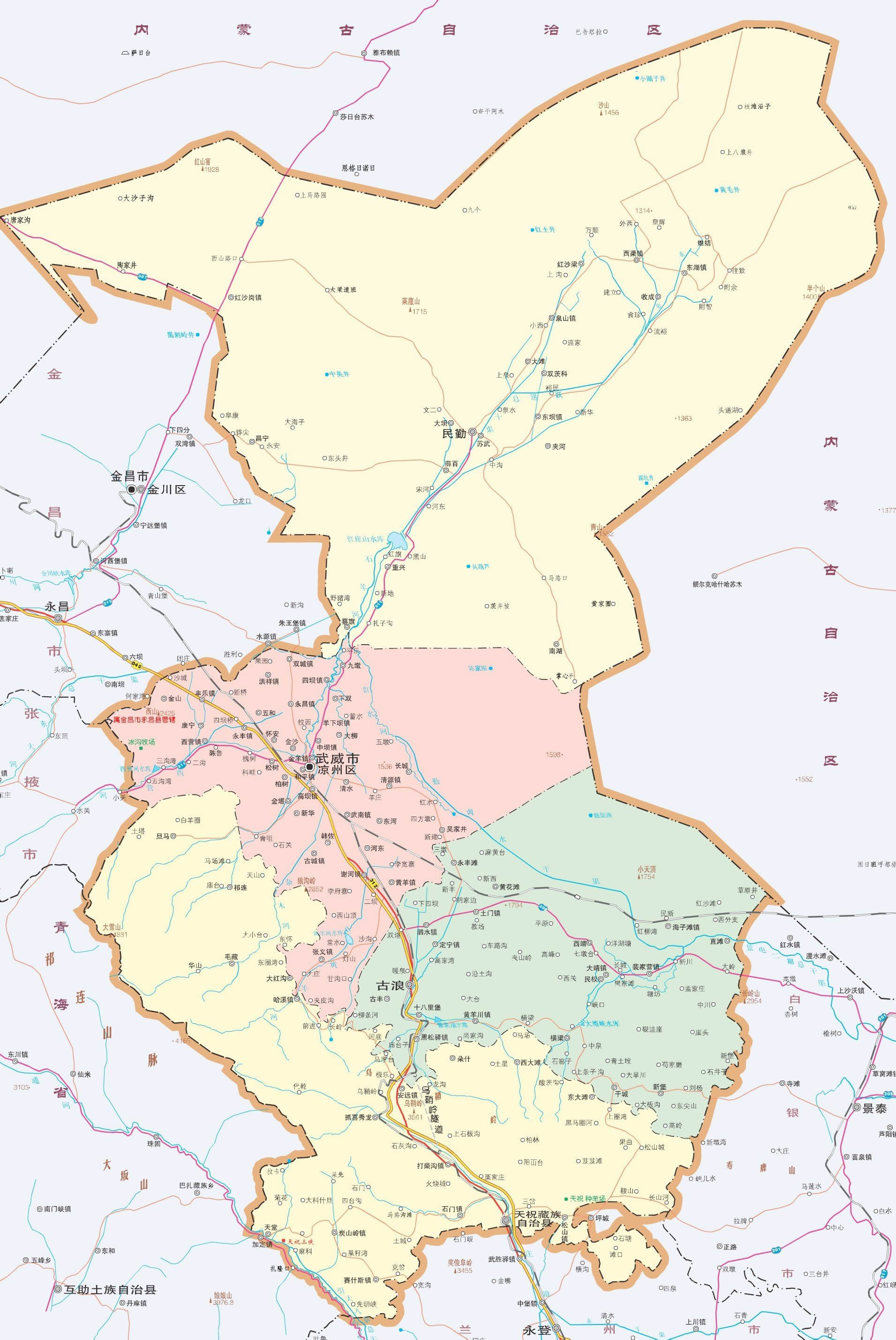 涼州區(qū) 面積5081平方千米,人口88.53萬(wàn),政府駐東大街街道,下轄37個(gè)鎮(zhèn)