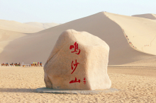 鳴沙山以沙動成響而得名。東漢稱沙角山,俗名神沙山,晉代始稱鳴沙山,其山東西長40余公里,南北寬約20公里,主峰海拔1715米。峰巒危峭,山脊如刃,人馬踐墜,經(jīng)宿復初;人乘沙流,有鼓角之聲,輕如絲竹,重若雷鳴,故稱“沙嶺晴鳴”,為敦煌八景之一。
