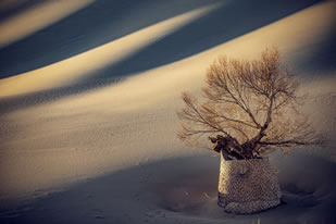夫妻柳裁植于1971年,是同根系長出的兩株相互依偎的旱柳,被稱為“夫妻柳”。它們在鳴沙山月牙泉陪伴下共度無數(shù)寒暑歲月,成為游人駐足留戀的大漠一景。1997年,一場沙塵暴襲擊了歷經(jīng)劫難的“夫妻柳”,夫妻柳不幸從根部折斷。后在工作人員的精心呵護下,夫妻柳起死回生夫妻柳重現(xiàn)枝繁葉,形如一對戀人繁育出了更為強盛的下一代。
