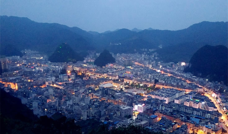 樂業(yè),隸屬于廣西百色市,被譽為“世界天坑之都”,位于廣西西北部,地處云貴東南麓,東北與河池市天峨、鳳山兩縣相鄰,東南依凌云縣,西南與田林接壤,西北與貴州省的冊亨、望謨、羅甸三縣隔紅水河相望?h城距國家重點工程龍灘水電站160公里,距百色市168公里,距廣西首府南寧市400公里,距貴州省省會貴陽市370公里,是重慶、貴州經(jīng)龍邦口岸(國家一類口岸)往東盟國家最為便捷的通道之一。樂業(yè)縣常住人口為146397人?偯娣e2633.17平方千米。全縣現(xiàn)轄4鎮(zhèn)4鄉(xiāng),有84個村民委(社區(qū))1084個村民小組。