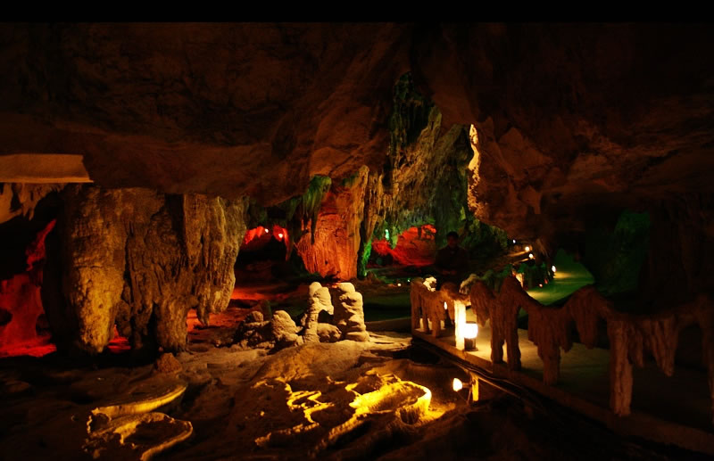 樂業(yè)鳳山世界地質(zhì)公園,總面積930平方公里,已發(fā)現(xiàn)大小天坑30個,是世界上最大的天坑群。天坑群中以大石圍天坑規(guī)模最大,深度和容積居世界第二;坑底森林面積10.5萬平方米,居世界第一。園區(qū)內(nèi)發(fā)現(xiàn)洞穴近百個,鳳山江州地下長廊洞穴系統(tǒng)長37.9公里,為中國第三長洞穴;園區(qū)內(nèi)洞穴廊道巨大,有10000平方米以上的洞穴大廳24個,為世界上洞穴大廳最為密集的區(qū)域,其中以羅妹蓮花洞群為主洞群區(qū)域;在冒氣洞區(qū),陽光大廳最高300米,是世界上最高的洞穴廳堂;羅妹洞有296個蓮花盆,最大直徑達9.2米,被稱為“蓮花盆之王”;鴛鴦洞有千姿百態(tài)的石筍千余根,其中兩根石筍分別高29米和36米,進入中國最高大石筍之列。