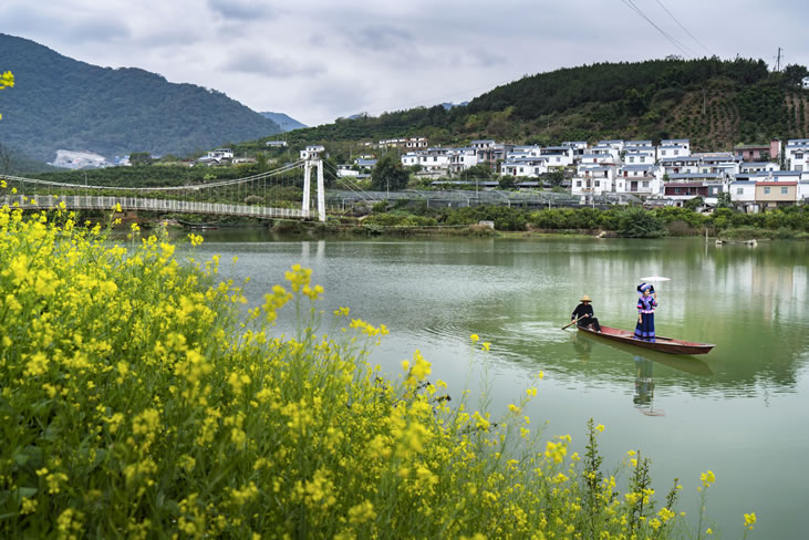 新豐鄉(xiāng)村旅游區(qū)位于百色市西林縣普合苗族鄉(xiāng)新豐村,是1998年由天生橋水電站淹沒區(qū)搬遷而成的移民新村。 全村面積2.41平方公里,轄4個村民小組。美麗的馱娘江穿村而過,將村莊劃分為兩區(qū)四組兩半島,三個游覽區(qū),由兩座特色的吊橋相連。新豐水電站的建成,在高峽間形成平湖,高聳的青山與廣闊的湖面,讓新豐村靜臥在一幅絕美的山水畫中,使這里成為眾多攝影愛好者的心儀之地。