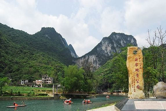 廣西樂(lè)業(yè)-鳳山世界地質(zhì)公園,位于廣西西北部云貴高原向廣西盆地過(guò)渡的斜坡地帶,由百色市樂(lè)業(yè)大石圍天坑群國(guó)家地質(zhì)公園和鳳山巖溶國(guó)家地質(zhì)公園組成,總面積930平方千米,F(xiàn)已發(fā)現(xiàn)大小天坑30個(gè),是世界上最大的天坑群之一。地質(zhì)公園區(qū)中鳳山三門(mén)海景區(qū)擁有高穴馬王洞和水上天坑等地質(zhì)遺跡。天坑群中以大石圍天坑規(guī)模最大,深度和容積居世界第二;坑底森林面積10.5 萬(wàn)平方米。