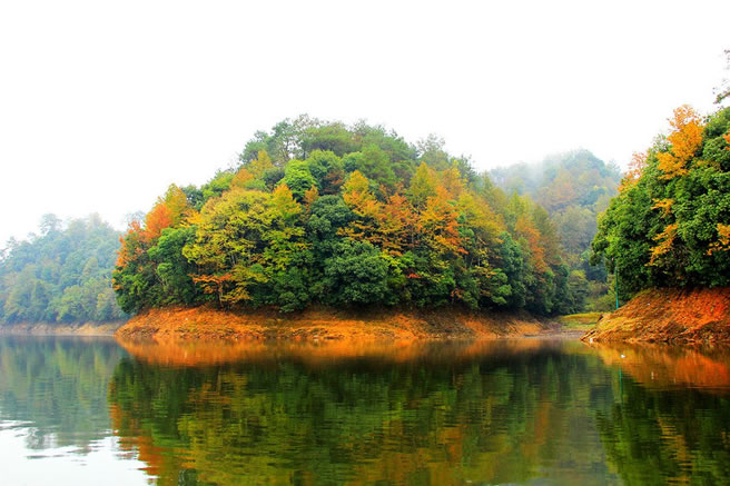 鴛鴦湖,位于縣城東部約1.5千米的鳳凰山腳下,是兩口并排、相隔30多米的大水潭。右潭水清澈如鏡,水中游魚(yú)歷歷可數(shù);左潭水色渾濁,略呈黃色。當(dāng)?shù)厝嚎偡Q水色清澈的右潭為母塘,水色渾濁的左潭為公潭,俗稱“公母塘”。兩塘的水均從鳳凰山腳下涌出。