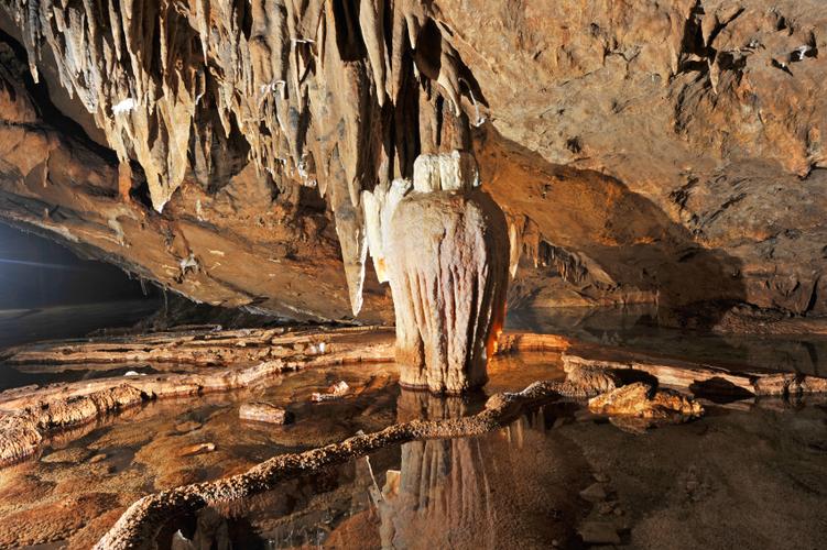 武宣縣城西15千米祿新古杭村的犀牛巖,溶洞下深10多米,長10多千米,寬處可容萬人,窄處僅能側(cè)身而過;洞中有洞,洞上有洞,洞下有洞,洞洞相連;洞內(nèi)乳石奇形怪狀,千姿百態(tài)的景觀,讓眾多游客目瞪口呆,國家?guī)r溶研究所副所長房昌齡感嘆地說:“犀牛巖集千家洞之美,萬家?guī)r之奇,可謂中國第一洞了”。