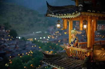 在西江苗寨可以享用苗家風(fēng)味特色晚餐,席間接受苗家少女飛歌敬酒,在苗家吊角樓美人靠(涼臺(tái)欄桿,苗家稱為"美人靠")上觀千戶苗寨萬(wàn)家燈火。還可以觀賞銅鼓蘆笙表演,晚上可宿苗家吊腳樓。