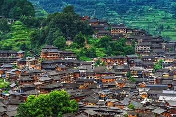 西江千戶苗寨,位于貴州省黔東南苗族侗族自治州雷山縣西江鎮(zhèn)南貴村,距雷山縣城36千米,距黔東南州州府33千米,由十余個(gè)依山而建的自然村寨相連成片,全寨原住居民有1400多戶,6000多人,其中99.5%為苗族,是全國(guó)也是全世界最大的苗寨。四面環(huán)山,重連疊嶂,梯田依山順勢(shì)直連云天,白水河穿寨而過(guò),將西江苗寨一分為二。