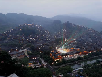 黃昏時(shí)分,西江千戶苗寨千家萬(wàn)戶就亮起了燈。隨著天色越來(lái)越暗,西江千戶苗寨變成燈的海洋,西江千戶苗寨呈現(xiàn)牛頭的形狀。西江千戶苗寨景區(qū)在山坡高處的路邊修建了觀景臺(tái),開(kāi)通觀光車。