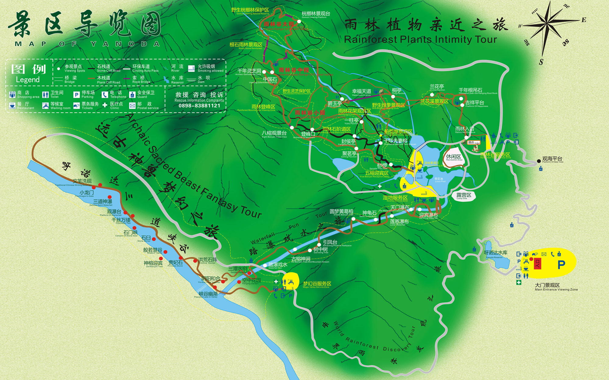 “游山玩水路線”(全程4—5小時(shí)):首先抵達(dá)游客中心,乘坐電瓶車抵達(dá)夢(mèng)幻谷,體驗(yàn)踏瀑戲水項(xiàng)目,游覽雨林谷,探尋雨林六大奇觀,體驗(yàn)懸崖觀海秋干、哇哎嚕玻璃觀景平臺(tái)、魔鬼秋千,最后乘坐雨林巴士返回大門景觀區(qū),打卡冰雪奇境。 |