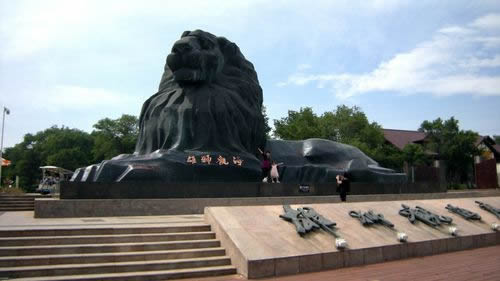 氣焰澎湃的雄獅觀海雕塑,長21米,高10米,是我國當(dāng)前最大的單體獅雕,建立投資100萬元,被稱為“百萬雄獅護大!保鼩鈩輿皼暗鸟v守在金色的沙岸,好像守望著碧藍的大海,維護著旅客的平安,企盼著景區(qū)的輝煌前景。