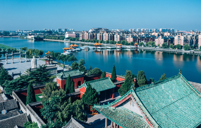 龍湖因伏羲氏定都宛丘,以龍紀官,號曰龍師而得名,水域面積近萬畝,是國家濕地公園、國家水利風(fēng)景區(qū),也是中國面積最大的內(nèi)陸環(huán)城湖,被譽為“中原明珠”、“內(nèi)陸奇觀”。