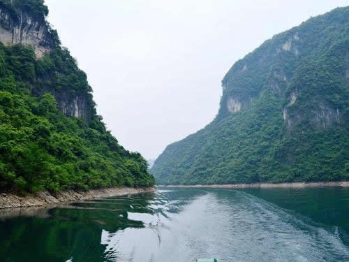 從隔河巖碼頭上船,便開(kāi)始了浪漫的清江之旅。船從大壩右側(cè)駛?cè)胍坏缻{谷,這是清江畫(huà)廊第一景——倒影峽。峽長(zhǎng)5公里,水靜谷幽,山峰陡峭,處處皆畫(huà)。倒影峽水平如鏡,魚(yú)游枝頭鳥(niǎo)宿水的畫(huà)面,隨處可見(jiàn)。兩岸的巖石形成獨(dú)特的天然石林景觀,主峰有文峰倒影,駱駝飲水,孔雀開(kāi)屏。巫靈大佛等自然景觀。倒影峽因山得名,這座山叫作文峰山,陽(yáng)光燦爛的時(shí)候,它雄勁的身姿便倒映在清江之中,故此處稱為文峰倒影。隔河巖大壩蓄水后,便被稱為倒影峽了。