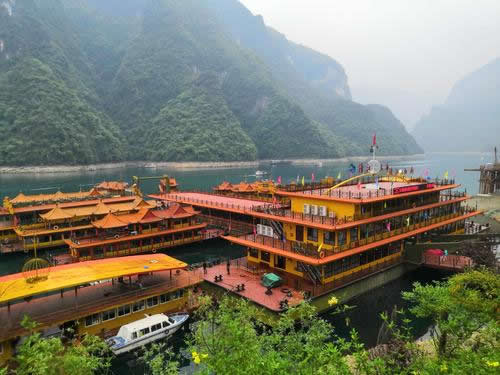 C線:游客中心→風(fēng)雨長(zhǎng)廊→時(shí)空隧道→鼓樂(lè)堂→土家風(fēng)情街→旅游碼頭→倒影峽→北緯30°島→登仙人寨→返回游客中心