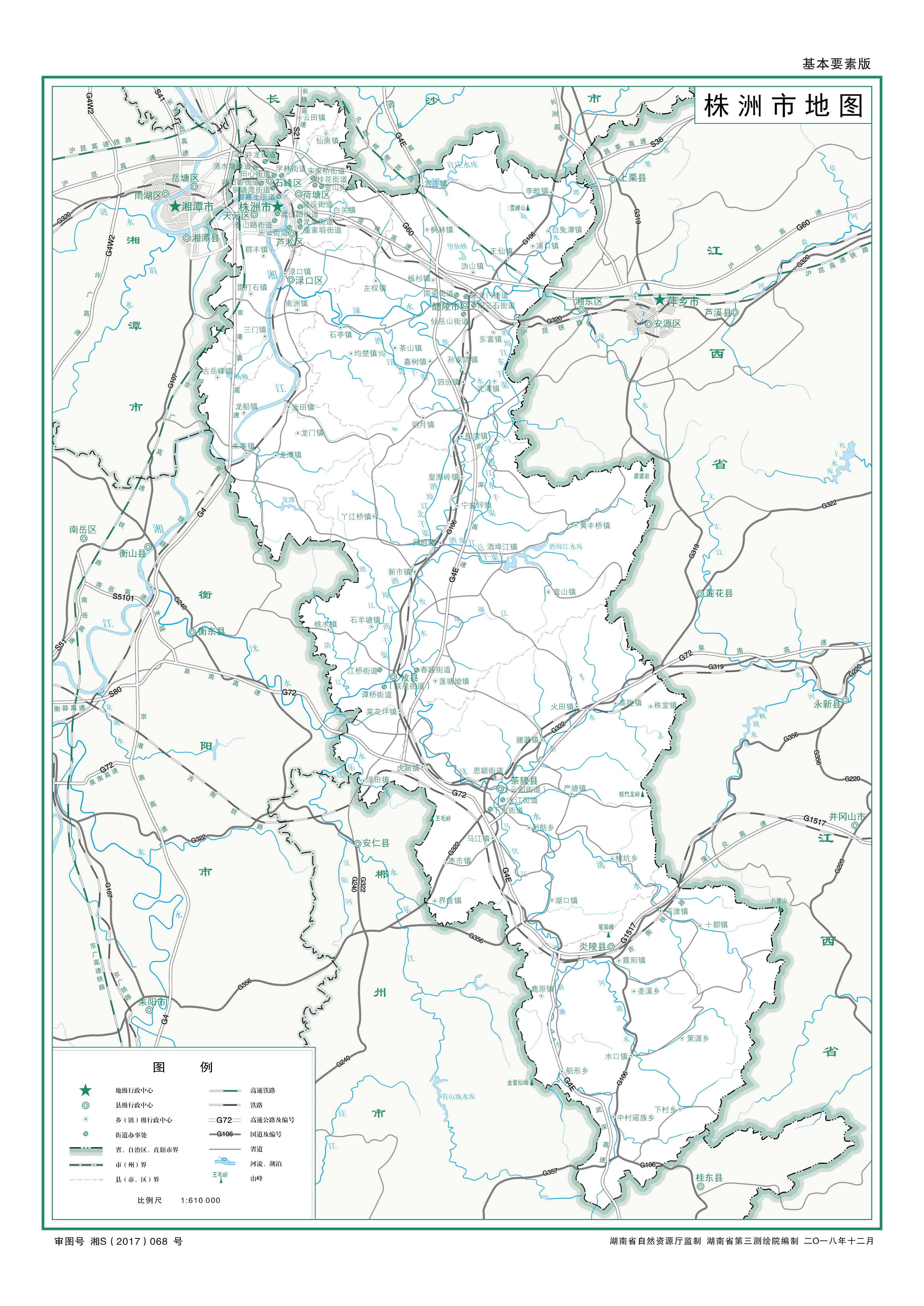 株洲市轄5個市轄區(qū)、3個縣,代管1個縣級市:
