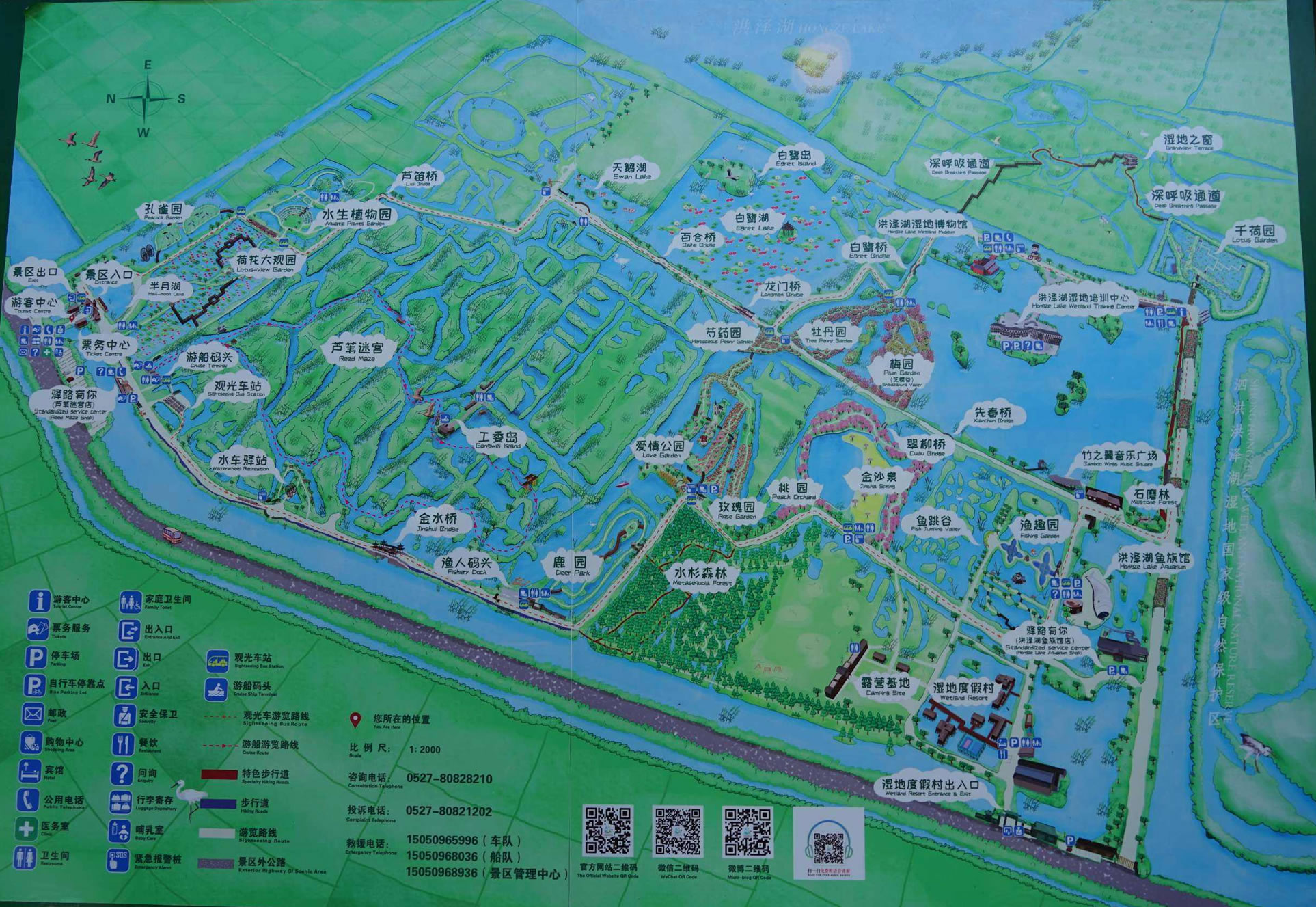 洪澤湖濕地公園由南京大學(xué)、南京林業(yè)大學(xué)規(guī)劃設(shè)計(jì),是泗洪縣充分利用洪澤湖濕地國(guó)家級(jí)自然保護(hù)區(qū)的資源優(yōu)勢(shì)打造的集生態(tài)休閑、觀光游覽、科普教育等為一體的旅游景區(qū)。已建成多媒體展示館、濕地生態(tài)博物館、古泗州文化博物館、濕地水族館、濕地景觀立體電影演示廳、荷花大觀園、千荷園、魚(yú)類繁育中心、水車體驗(yàn)區(qū)、垂釣中心、濕地蘆葦迷宮、精品荷花池、主題文化墻等旅游景點(diǎn),建有水上網(wǎng)球場(chǎng)、沙灘排球場(chǎng)、高爾夫練習(xí)場(chǎng)、水上運(yùn)動(dòng)中心等健身運(yùn)動(dòng)項(xiàng)目,配套建設(shè)了金水山莊度假村、游客服務(wù)中心、濕地管護(hù)中心等服務(wù)設(shè)施。景區(qū)內(nèi)湖水浩淼,原野廣袤,荷苑飄香,曲橋蜿蜒,蘆蕩深深,百鳥(niǎo)齊鳴。