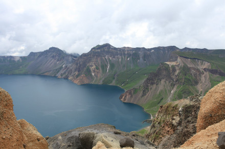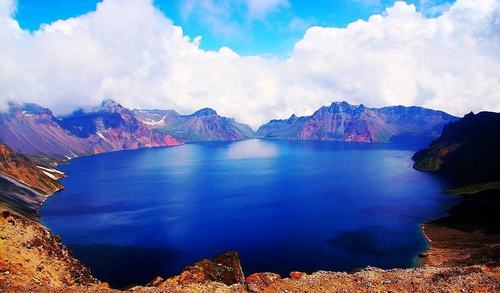 長白山天池,又稱白頭山天池,坐落在吉林省東南部長白山自然保護(hù)區(qū)內(nèi),是中國和朝鮮的界湖,雙方各擁有一部分水域。天池南北長約4400米,東西寬約3370米,其池水的海拔高度為2189.1米,最深處為373米,平均204米,水面面積9.82平方千米,周長13.1千米。據(jù)《長白山江岡志略》記載:“天池在長白山巔的中心點,群峰環(huán)抱,離地高約20余里,故名為天池。”