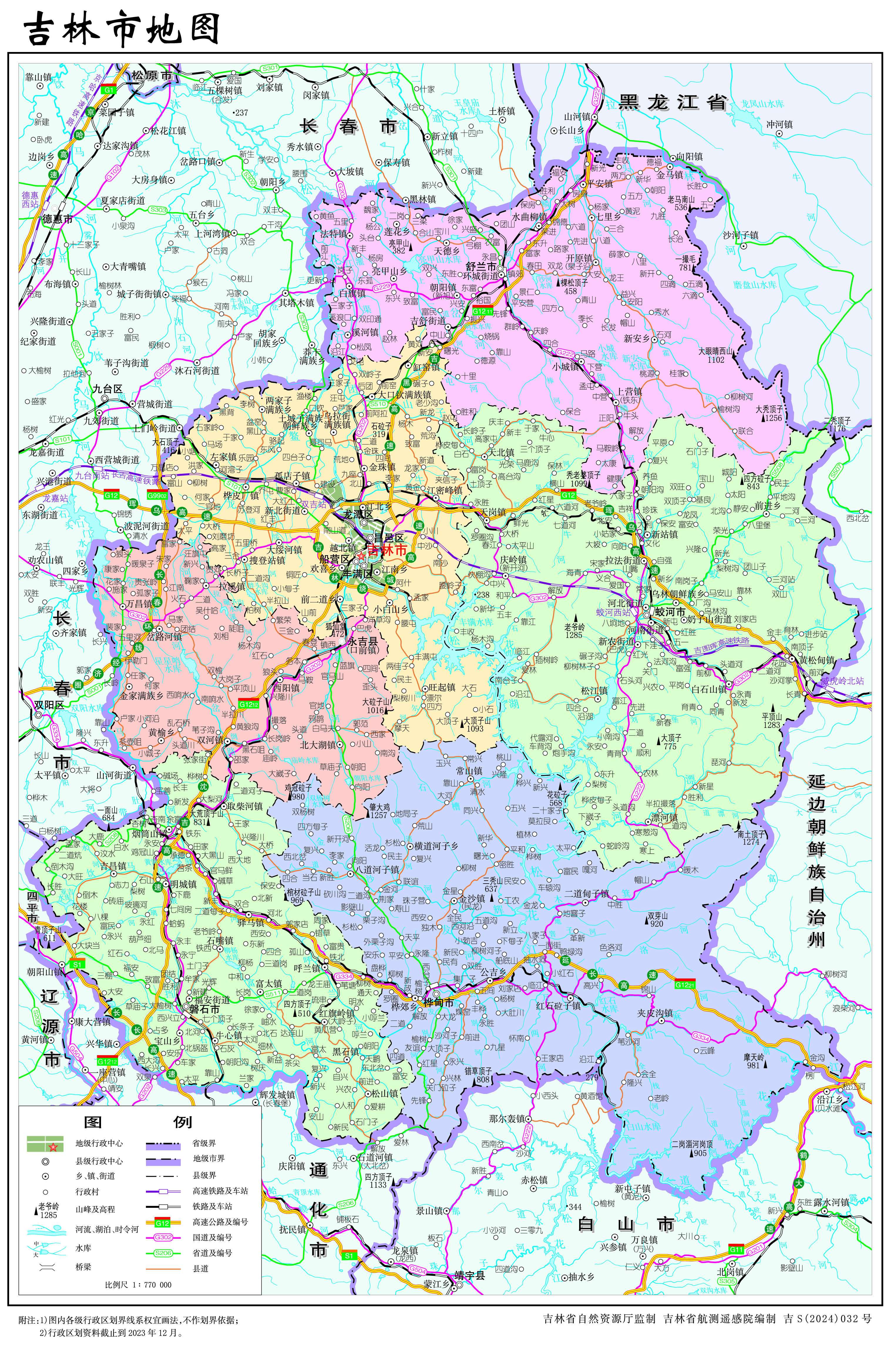 吉林市轄4個(gè)城區(qū)、1個(gè)縣,代管4個(gè)縣級(jí)市: