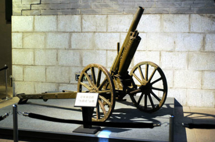 日本九四式山炮:1945年日本其中的戰(zhàn)敗后,其武器、軍備被中國軍繳獲,其中包括一批九四式山炮。 文革后,一門九四式山炮幾經(jīng)輾轉(zhuǎn),到了沈陽軍區(qū)一分部吉林敦化分庫的軍需倉庫。1997年12月4日,“九一八”事變紀(jì)念館擴(kuò)建辦公室到吉林敦化征集到該山炮及專用炮嘴。1999年9月18日,該九四式山炮及專用炮嘴由“九一八”歷史博物館收藏。
