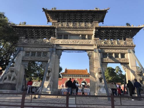 過了石橋不遠(yuǎn)處就是石牌坊,位于通往正紅門的中間路段,其上雕刻生動(dòng)形象,是清代雕刻的珍品。過了石牌坊,就是正紅門了,是陵寢的大門,兩側(cè)院落東為更衣亭西為宰牲亭。