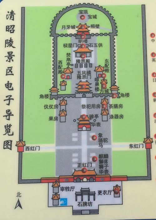 清昭陵,是在平地上建立的,主要建筑位于中軸線上,其它建筑對(duì)稱分布于中軸線兩側(cè)。昭陵由三部分組成。