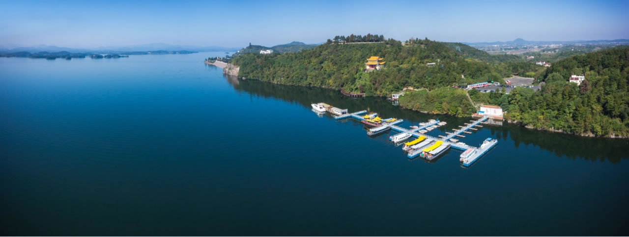 游客中心→乘船游覽燕子島、周瑜島、萬佛島→龍河塔登高→風情島體驗民俗→返程。