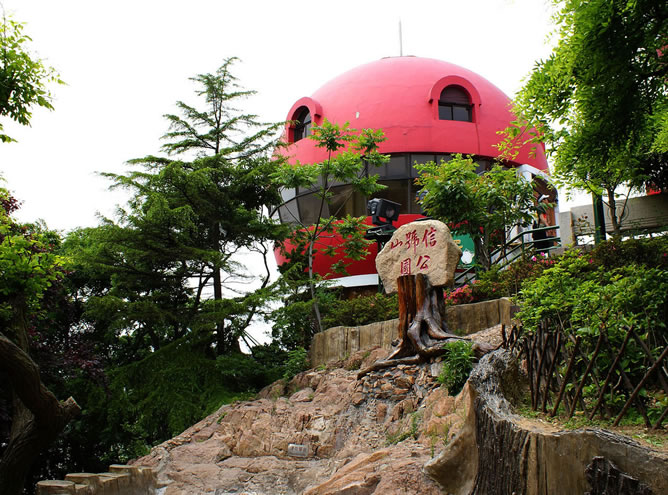 信號山公園旅游攻略:山頂紅色蘑菇樓與旋轉(zhuǎn)觀景樓為標(biāo)志性建筑