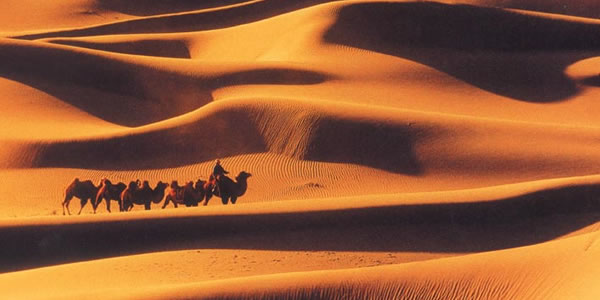 恩格貝,蒙古語,意為平安、吉祥。地處庫布齊沙漠中段。歷史上曾綠草如茵,牲畜成群,召?gòu)R香火繚繞,是蒙古人民世代生息的地方。人類掠奪性的開墾、過牧,加上戰(zhàn)爭(zhēng)因素,作用于此地脆弱的生態(tài)環(huán)境,這里逐漸地被夷為沙海。土地資源喪失,人民被迫遷徙他鄉(xiāng)。