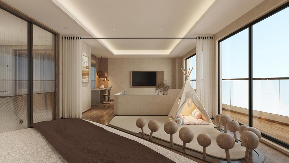 酒店內(nèi)設(shè)有424間風(fēng)格迥異的客房,每間都延續(xù)了森泊品牌對多樣性的追求,為游客提供了豐富的選擇。客房設(shè)計巧妙地融合了山海的自然美景,讓游客能夠全方位地感受到海島風(fēng)光的旖旎與迷人魅力。從充滿浪漫氣息的摩洛哥風(fēng)情,到典雅的地中海風(fēng)格,再到簡約而不簡單的侘寂風(fēng)格,每一種設(shè)計都在山海之間營造出了一種獨(dú)特的居住藝術(shù)。
