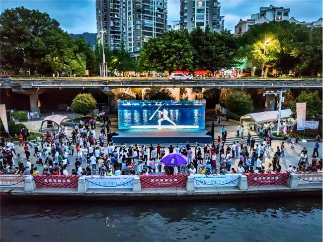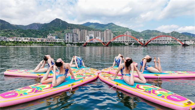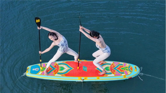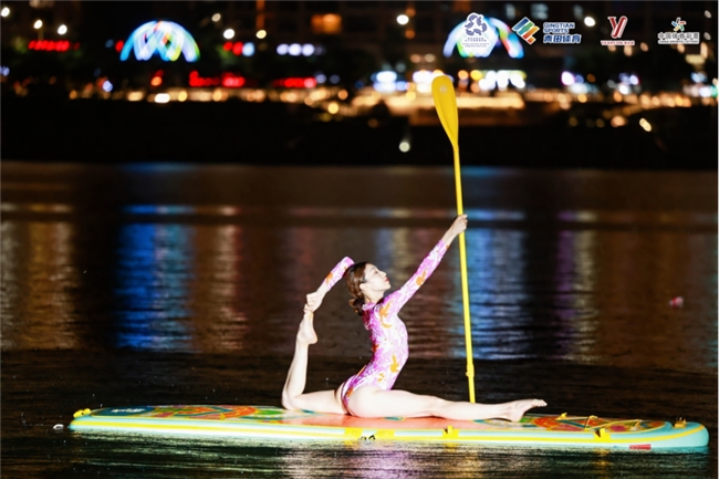 前屈、后彎、扭轉(zhuǎn)、平衡、倒置……音樂(lè)與動(dòng)作和諧統(tǒng)一,身體與槳板融為一體。參賽隊(duì)員們展示的不僅是控制身體的力量,更是人與自然、美與健康的完美結(jié)合,圍觀群眾不時(shí)給予陣陣掌聲。