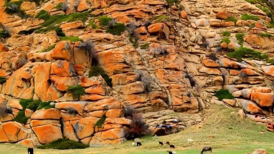 6.伊吾紅石峪(伊吾前山鄉(xiāng)北部山地中,背風坡的山地草原,有一片罕見的花崗巖山體,被凜冽的北風風化成丘陵狀,巨大的花崗巖則破碎成一個個的小塊,花崗巖破碎成類似于黃山飛來石的感覺!)
