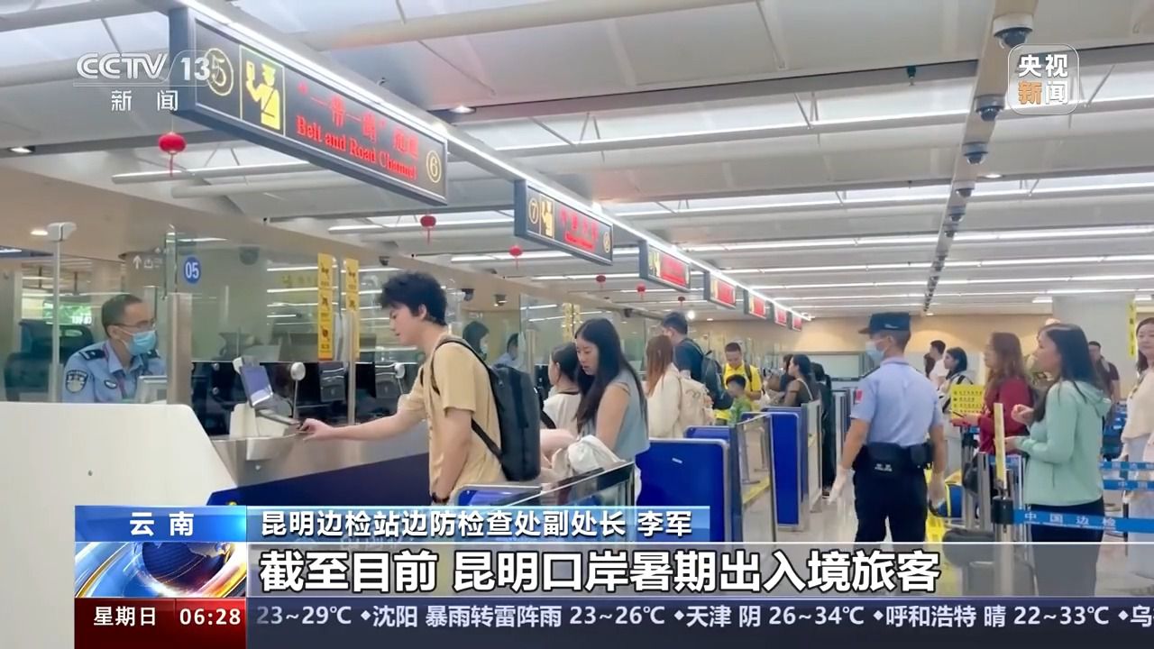 昆明邊檢站邊防檢查處副處長(zhǎng) 李軍:截至目前,昆明口岸暑期出入境旅客達(dá)到10萬(wàn)人次,出入境航班達(dá)到900余架次,同比增長(zhǎng)70.47%和55.34%。