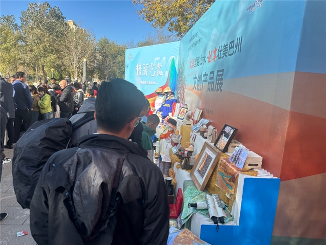 活動現(xiàn)場,展示了巴州八縣一市多款具有特色的文創(chuàng)產(chǎn)品,包括樓蘭織錦、衛(wèi)衣、手提包、水杯、明信片、冰箱貼和紀念幣等,不僅設計精美,而且蘊含了深厚的巴州歷史和文化底蘊,吸引了眾多游客的目光。