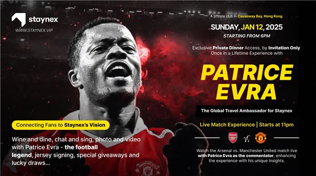 新加坡STAYNEX.VIP WEB3酒店入駐平臺(tái)攜手曼聯(lián)傳奇球星在香港銅鑼灣高級(jí)私人會(huì)所2025高級(jí)VIP跨年榮譽(yù)晚會(huì)。