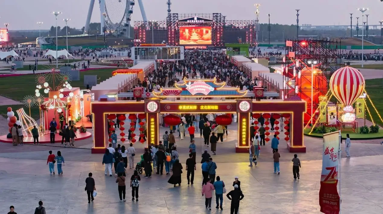 雙節(jié)期間,哈爾濱冰雪大世界打造全天候多場景活動矩陣。千人共繪大美中國插畫向新中國76周年華誕獻禮,讓親子互動在共祝祖國的愛國情中升華;夢幻冰雪館以“最大的室內(nèi)冰雪主題樂園”,讓游客驚呼四季皆可賞冰樂雪的美妙;非遺購物周集結14個省2個直轄市的非遺技藝和地道美食,讓人大開眼界;百人國慶主題花車巡游,56個民族親如一家,傳遞著團圓的喜慶與歡樂;大型奇幻秀《王的戰(zhàn)車》,以震撼視效展示千年前“英雄崛起”的王者風采;多場體育賽事和公益演出成功舉辦,將運動激情、人文溫情與歡慶雙節(jié)的熱烈氛圍交融;煙花秀、無人機表演、非遺打鐵花,三重視覺驚艷場景輪番上演,讓游客直呼“不虛此行”。