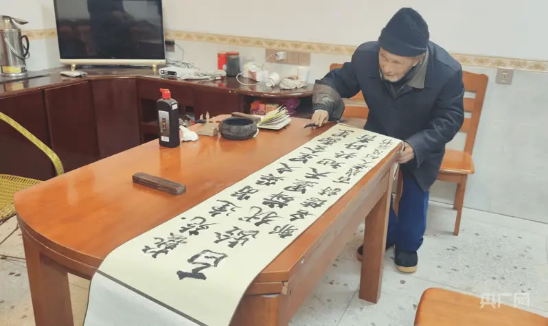 在漚江鎮(zhèn)上東村,101歲的何茂基正站在案前揮毫潑墨,握筆穩(wěn)穩(wěn)當當,行筆蒼勁有力。這位世紀老人的日常生活,正是桂東長壽現(xiàn)象的生動體現(xiàn)。