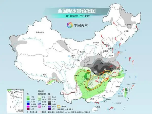 今起三天(1月19日至21日),寒潮持續(xù)影響中東部,大部地區(qū)有雨雪冰凍天氣過(guò)程,氣溫下降劇烈,多地降溫后將體驗(yàn)同期少見的寒冷。其中今天,雨雪天氣進(jìn)入過(guò)程最強(qiáng)時(shí)段,河南、湖北、安徽等地部分地區(qū)或遭遇暴雪,公眾需注意防范。