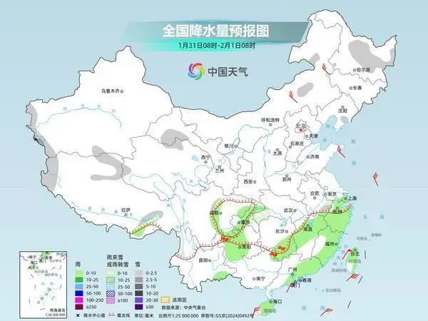 明天,我國(guó)大部地區(qū)將迎來(lái)降水間歇期,僅內(nèi)蒙古中部、新疆南疆西部山區(qū)、西藏西部和東北部、青海南部等地部分地區(qū)有小雪或雨夾雪,其中,西藏西部等地部分地區(qū)有中到大雪。西藏東南部、貴州中西部、云南東部、福建東南部、廣東東南部沿海、廣西西北部、海南島、臺(tái)灣島等地部分地區(qū)有小雨。