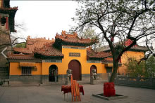 興國禪寺居千佛山山腰,內(nèi)有大雄寶殿、觀音堂、彌勒殿、對華亭,占地3000平方米,是山東著名香火勝地。據(jù)明成化七年(1471年)石志記載,該寺曾遭兵火破壞,成化四年(1468 年)8月3日,德王府內(nèi)官蘇賢游覽千佛山,看到當(dāng)時情景,不勝慨嘆,于是捐資建佛殿、僧房、廚房、糧倉等。寺門朝西,上額刻有原中國佛教協(xié)會主席、書法家趙樸初題寫:"興國禪寺"四字。楹聯(lián)石刻:"暮鼓晨鐘驚醒世間名利客,經(jīng)聲佛號喚回苦海夢迷 人",為濟(jì)南清未秀才楊兆慶書寫。殿內(nèi)塑釋迦牟尼、大悲觀音、地藏王菩薩、十八羅 漢、四大天王。門內(nèi)兩側(cè),有鐘鼓二樓。進(jìn)寺門南側(cè),千佛崖石壁上鐫刻佛像多尊。山崖由西向東依次有龍泉洞、極樂洞、洞天福地石坊、對華亭。