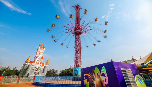 在優(yōu)美、輕快的旋律中,碩大的轉(zhuǎn)盤和轉(zhuǎn)臺(tái)錯(cuò)向旋轉(zhuǎn)、搖擺,隨著轉(zhuǎn)盤的搖擺,塔身徐徐上升。此時(shí),穩(wěn)坐飛椅的游客在離心力的作用下,上下飛旋,時(shí)而像在藍(lán)天翱翔,時(shí)而像在海上沖浪,能感受到騰云駕霧的快感。想體驗(yàn)兒時(shí)蕩秋千的感覺嗎,想體驗(yàn)在空中展翅飛翔的暢快嗎,那就來到高空飛翔盡情的放聲尖叫吧……