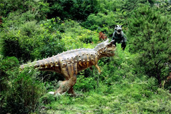 此處放置仿生恐龍十余種,是為了重現(xiàn)當(dāng)時恐龍統(tǒng)治地球的雄風(fēng)!