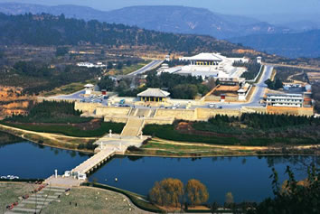 沮河由西向東呈U形繞橋山而過(guò),站在山上朝下看,東邊有河,西邊亦有河,就像水從山底穿過(guò),故此山名橋山,黃帝陵因山而得名橋陵。