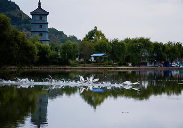 玉華宮東宮也叫郭玉溝,樹木郁蔥,清泉細(xì)流,天然巖窟鬼斧神工,人文景觀與自然景色渾然一體,若仙境一般。初春,山花爛漫,到玉華宮賞花,沉醉于山花爛漫之中,流連忘返;盛夏,溪回松風(fēng),曠然神怡,到玉華宮避暑,置身天然氧吧,感受郭玉溝的清爽和寧靜;金秋,秋菊盛開,色彩斑斕,到玉華宮游園,體驗陶淵明“采菊東籬下,悠然見南山”的閑情;隆冬,銀裝素裹,冰雕燈展 喜迎四方游客。