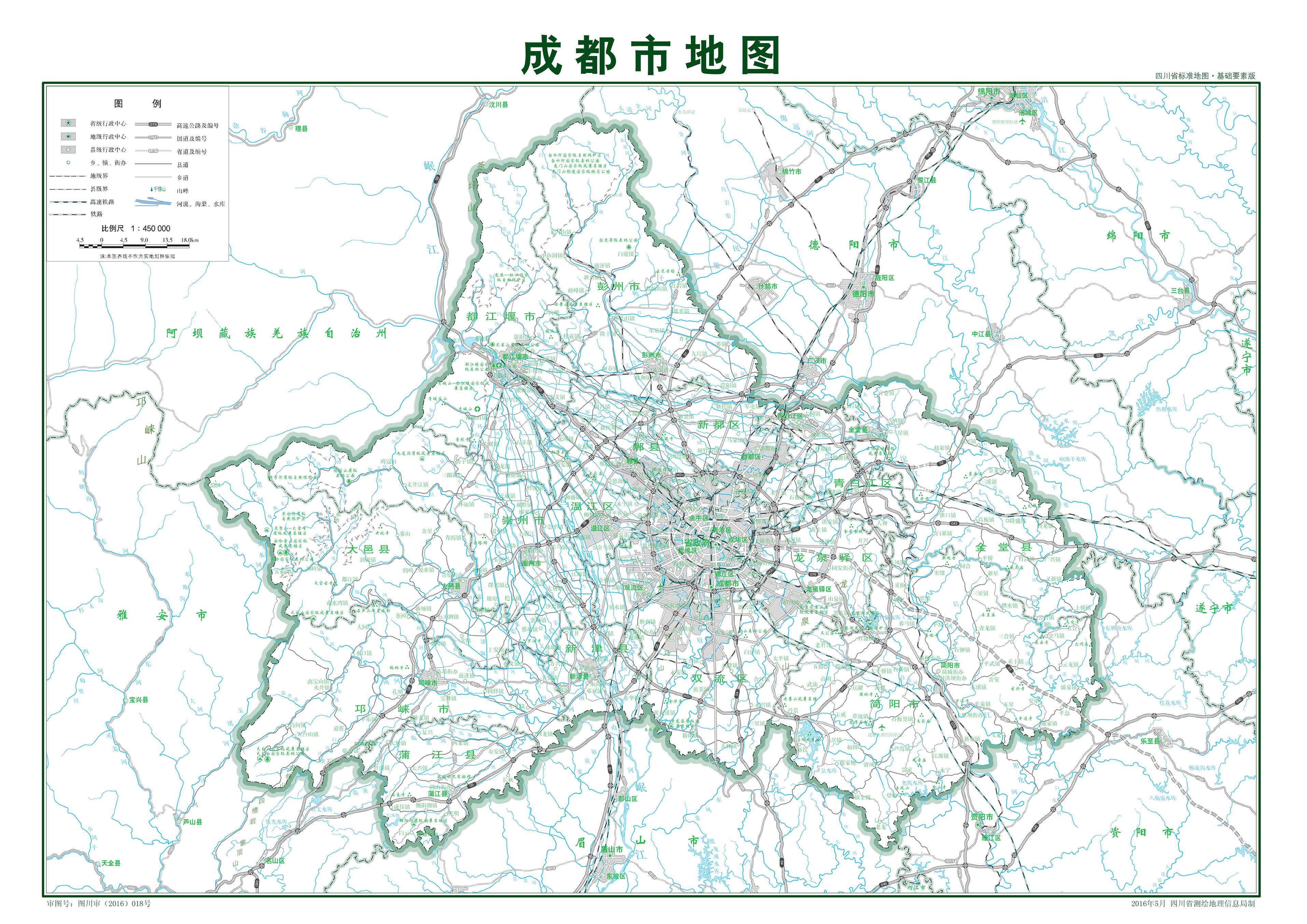 成都市轄12個市轄區(qū)、3個縣、5個縣級市: