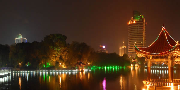 北湖公園位于南充市中心,是一座融自然風光和人文景觀于一處,集文化、娛樂、休閑于一體的綜合性園林。北湖是一片古老的水面。在漢代是“魚池”,明代稱“北湖”。明萬歷時知府饒景暈在湖邊建《嘉湖書院》,故又名“嘉湖”。民國8年,購樂至天池重瓣置于湖中,故又名“蓮池”。 1984年興建公園時,定名“北湖”,胡耀邦題寫了“南充市北湖公園”匾名。