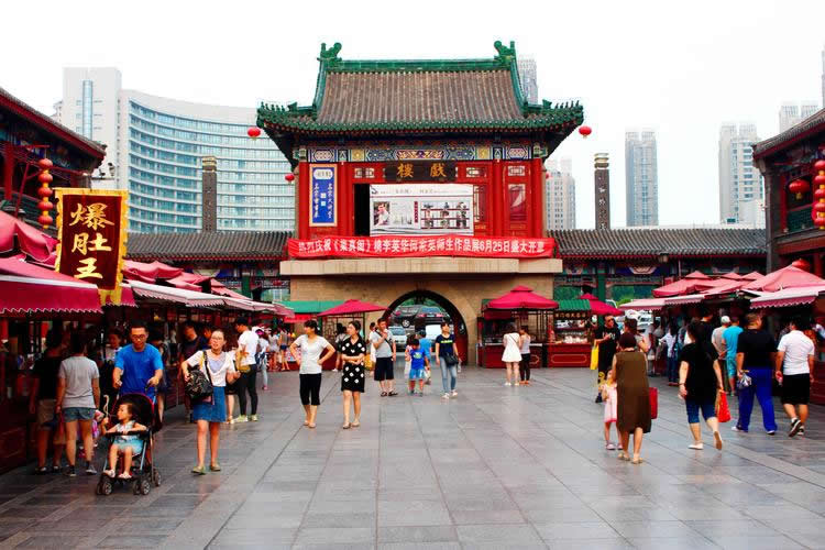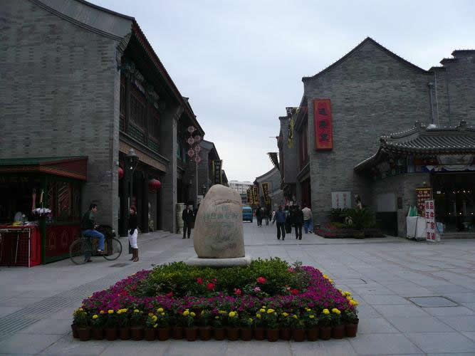 天津古文化街于一九八六年元旦建成開業(yè),整體建筑為仿清民間式建筑風(fēng)格,天后宮(媽祖廟)位于全街的中心。全街近百家店堂,有經(jīng)營天津地方特色的楊柳青年畫的楊柳青畫社,經(jīng)營泥人彩塑的泥人張彩塑工藝品經(jīng)營部,有經(jīng)營文房四寶,名人字畫的四寶堂,春在堂,有經(jīng)營文物古玩的文物公司萃文齋門市部,還有經(jīng)營全國各地的景泰藍(lán),雙面繡,牙玉雕,藝術(shù)陶瓷,中西樂器金銀飾品等上萬種名優(yōu)工藝品的幾十家店堂,各種商品貨真價(jià)實(shí),物美價(jià)廉,商家以質(zhì)量和信譽(yù)吸引中外游客。