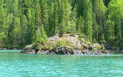 越桔島在喀納斯湖湖心島旁,有一個(gè)伸入湖中的半島,島上的林下苔蘚層長(zhǎng)滿了獨(dú)特的越桔灌叢,人們稱其為越桔島。