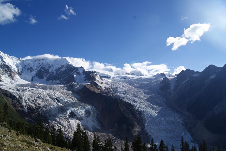 冰瀑奇觀只有在補(bǔ)充豐富、消融得快的冰川上才會(huì)出現(xiàn),如消融快而補(bǔ)給不足,冰瀑就會(huì)中斷,形成“懸冰川”;而補(bǔ)充過快而消融不及,冰雪就會(huì)把懸崖埋沒。米堆冰川是一條補(bǔ)充和消融都很“均衡”的具有靈性的冰川。