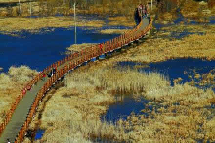 草海上有走婚橋,長達(dá)300余米,連接著兩岸摩梭人的村莊,為走婚的“阿夏”提供了便捷的通道,因此號(hào)稱——“天下第一愛情鵲橋”。據(jù)說它還是左所土司喇寶成的漢族夫人去后宮的一條捷徑。